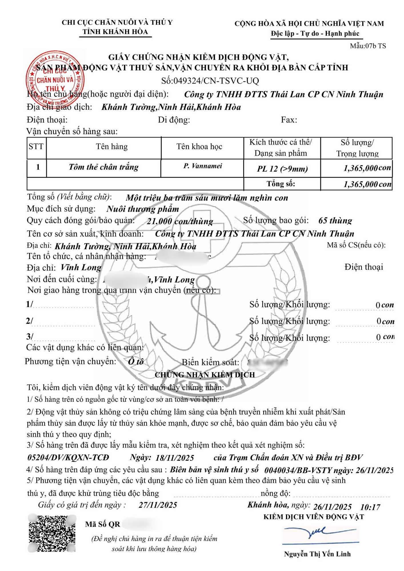 Mọi lô tôm xuất trại đều có giấy tờ kiểm dịch và hồ sơ rõ ràng, đảm bảo chất lượng tuyệt đối cho bà con.